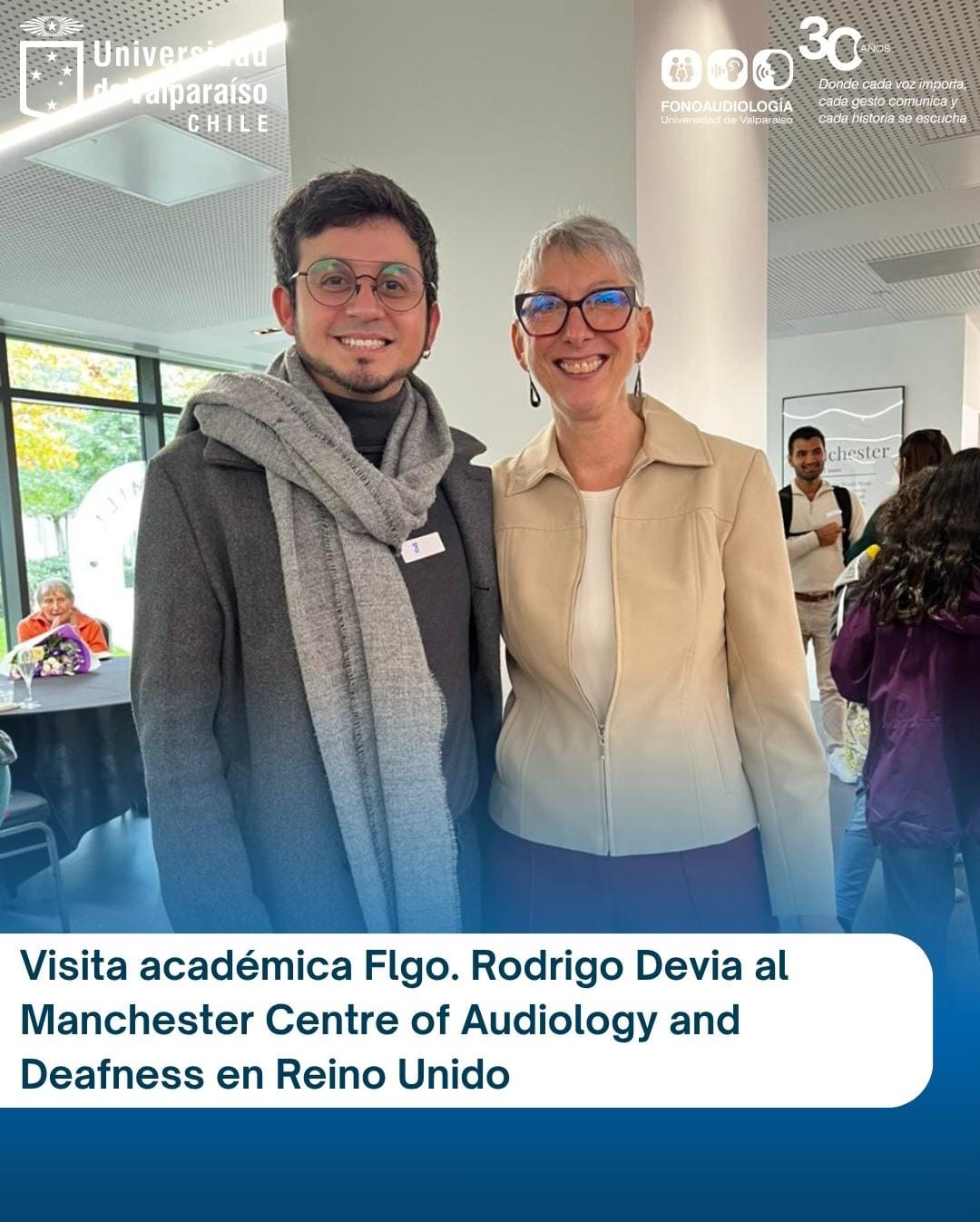 El académico Rodrigo Devia Silva, del Departamento de Audiología y Otoneurología de la Escuela de Fonoaudiología de la Universidad de Valparaíso, realizó una destacada visita al Manchester Centre for Audiology and Deafness (ManCAD) de la University of Manchester, en el Reino Unido.