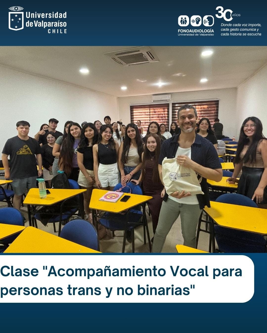 La actividad estuvo dirigida a estudiantes de tercer año de la carrera de Fonoaudiología, quienes tuvieron la oportunidad de profundizar en herramientas teóricas y prácticas orientadas al acompañamiento vocal de personas trans y no binarias, desde una perspectiva inclusiva y respetuosa de la diversidad.