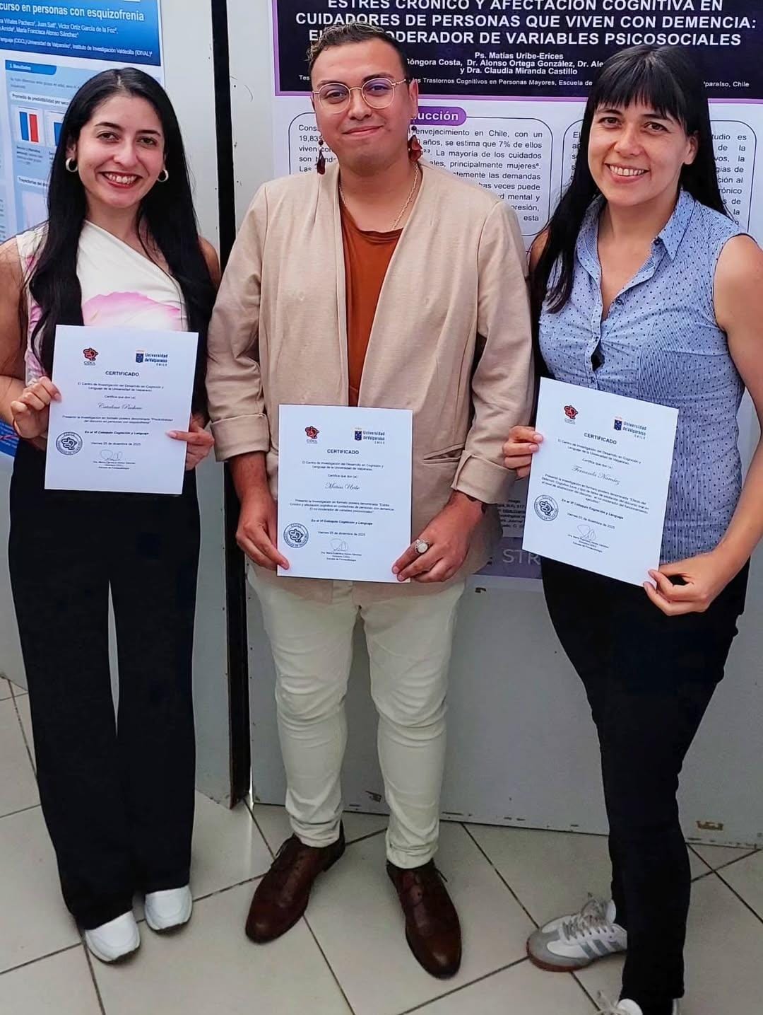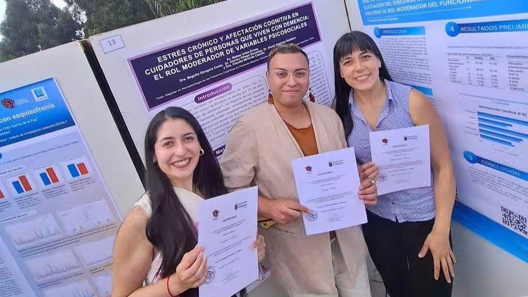 Finalmente, el Psicólogo Matías Uribe Erices, egresado de la Universidad de Valparaíso y estudiante del Magíster en Neuropsicología de los Trastornos Cognitivos en Personas Mayores, expuso su póster titulado: "ESTRÉS CRÓNICO Y AFECTACIÓN COGNITIVA EN CUIDADORES DE PERSONAS QUE VIVEN CON DEMENCIA: EL ROL MODERADOR DE VARIABLES PSICOSOCIALES". La presentación se enmarca en su investigación de tesis de postgrado, y cuenta con el auspicio del CIDCL, el Laboratorio STRESS.CL y del Instituto Milenio para la Investigación en Cuidados (MICARE).