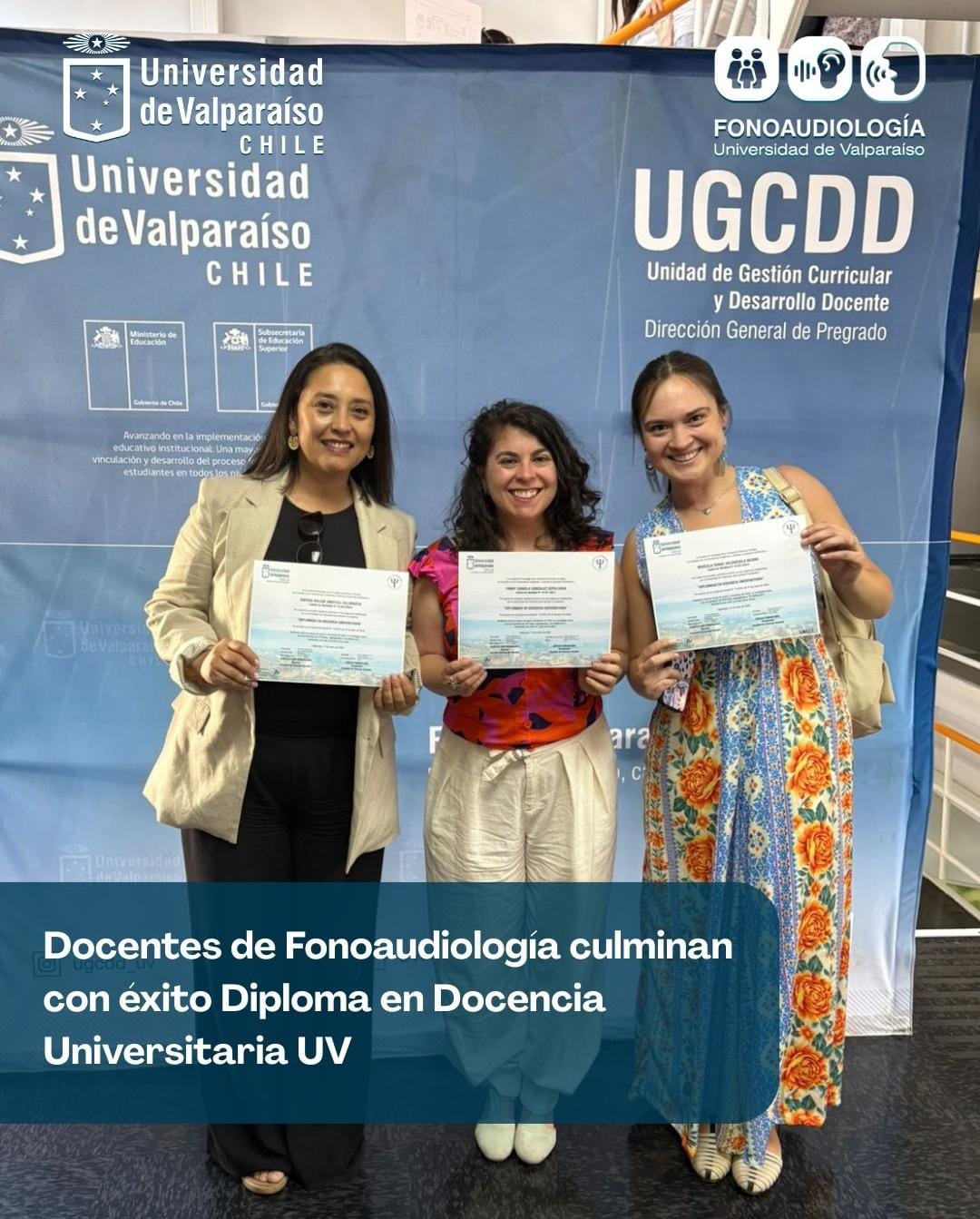 Las académicas Fanny González, Daphne Marfull y Marcela Valenzuela finalizaron exitosamente el Diploma en Docencia Universitaria UV, en su décima edición, instancia formativa orientada al fortalecimiento de la enseñanza en educación superior.