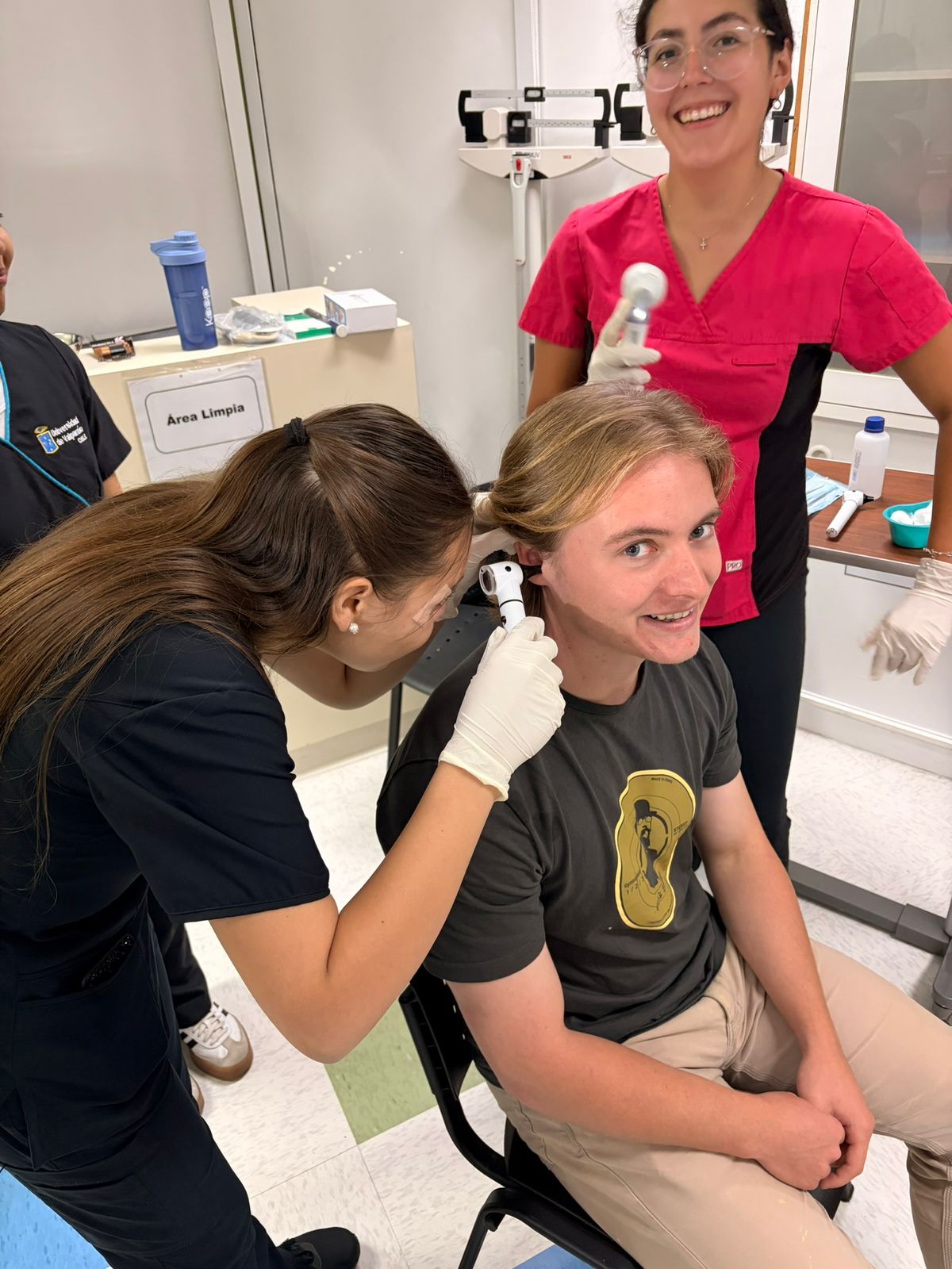 La actividad contempló una instancia teórica, dictada por el académico Fonoaudiólogo Juan Leyton, seguida de un módulo práctico orientado a la aplicación de conocimientos en contextos reales. Durante esta etapa, las y los participantes realizaron procedimientos de otoscopía y lavado de oído en usuarios que presentaban molestias auditivas asociadas a obstrucción por cerumen, fortaleciendo así sus competencias clínicas y habilidades profesionales.